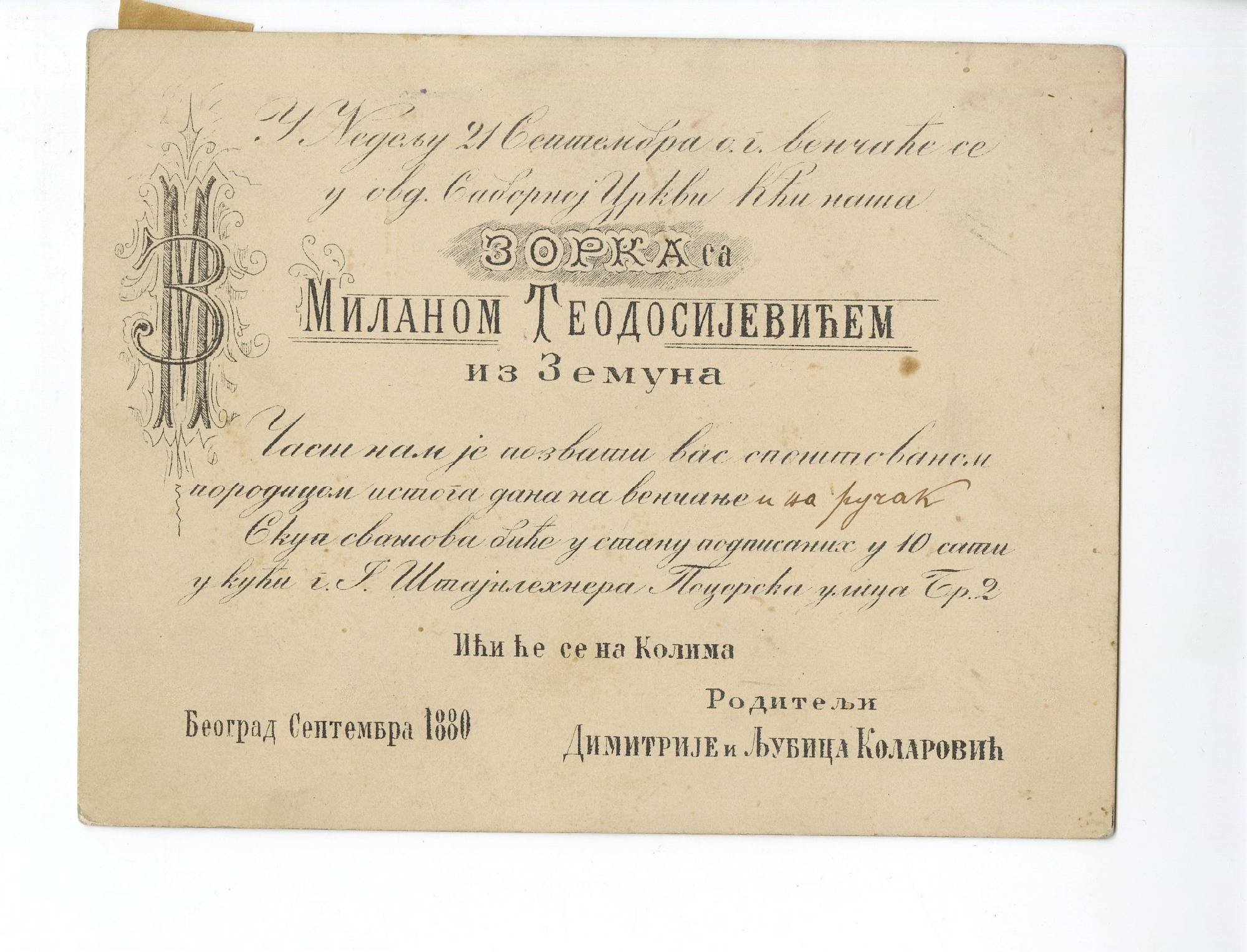 Зорка са мужем Миланом Теодосијевићем Позивница за венчање