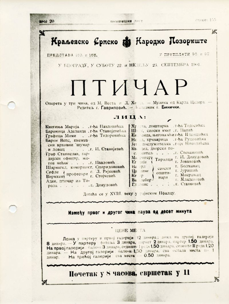 У водвиљу, оперети и народном комаду с певањем, женске улоге креиране су у тону мазних шипарица, стидљивих наивки, уображених каћиперки, враголастих субрета, пакосних сплеткашица или горопадних торокуша. Кроз та тешка искушења у старом репертоару прошле су две субрете београдског позоришта – Марија Цветић и Зорка Тодосићка. Године 1894. Цветићка се повлачи у пензију, када је Зорка замењује у главним улогама. Са Рајом Павловићем и Добрицом Милутиновићем она је била једна од првих солисткиња у позоришном хору.